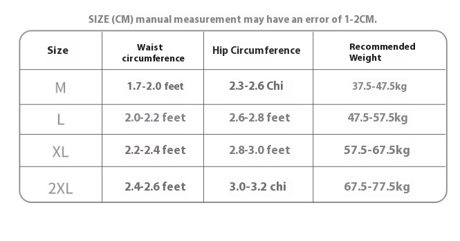 Size: M code [37.50 kg-47.50 kg], L code [47.50 kg-57.50 kg], XL code [57.50 kg-67.50 kg], 2XL code [67.50 kg-80.00 kg]]